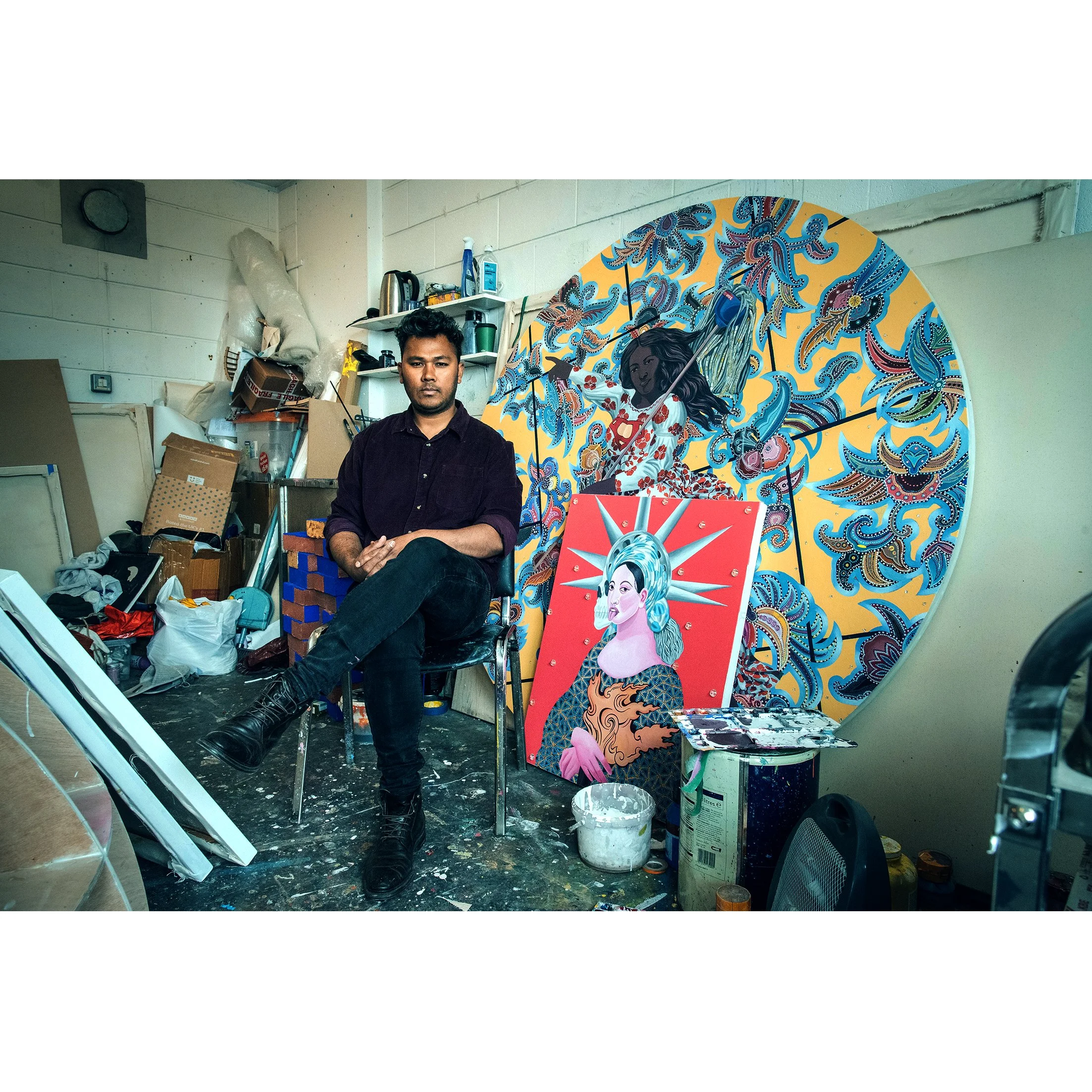 Manish harijan posing in his studio at Yorkshire art space UK, 2024 photo courtesy: Chris Saunders